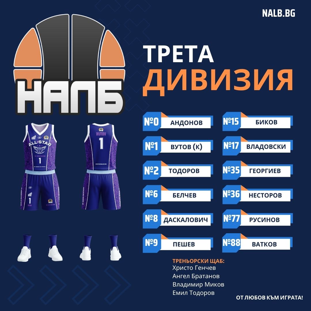 А сега на вашето внимание представяме състава на Трета дивизия за Звездния уикенд на НАЛБ за сезон 2025/2026 (състезателите са описани в низходящ ред според коефициента си):